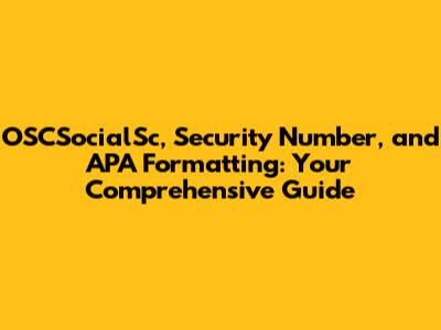 OSCSocialSc, Security Number, And APA Formatting: Your Comprehensive Guide