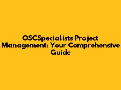 OSCSpecialists Project Management: Your Comprehensive Guide