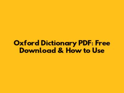 Oxford Dictionary PDF: Free Download & How To Use
