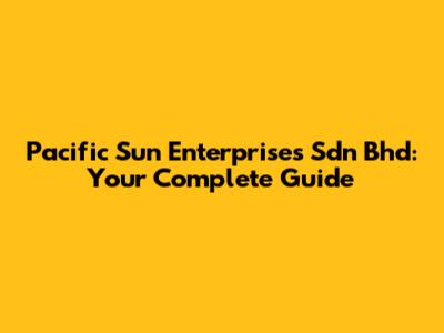 Pacific Sun Enterprises: Your Comprehensive Guide
