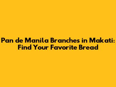 Pan De Manila Branches In Makati: Find Locations Near You