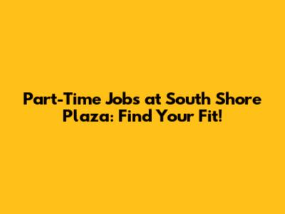 Part-Time Jobs At South Shore Plaza: Find Your Fit!
