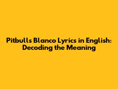 Hey music lovers! Ever found yourself tapping your feet to a Pitbull track, wishing you knew exactly what he was spitting? Let's dive deep into the English translation of 'Blanco' – a song that's got that infectious beat we all know and love. We're going to break down the lyrics, explore the themes, and maybe even uncover a few hidden gems in this vibrant track. So, grab your headphones, crank up the volume, and let's get started on this musical journey. You'll find that decoding Pitbull's lyrics can be just as exciting as the music itself!