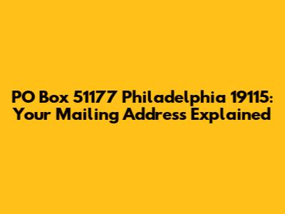 Hey everyone! Today, we're diving into the world of postal addresses, specifically focusing on PO Box 51177 in Philadelphia, PA 19115. If you're looking for a secure and convenient way to receive mail in the City of Brotherly Love, you've come to the right place. This article will break down everything you need to know about this particular PO Box, including how it works, why you might need one, and some handy tips to make the most of it. So, grab a coffee (or your favorite beverage), and let's get started!