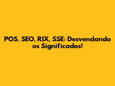 POS, SEO, RIX, SSE: Desvendando Os Significados!