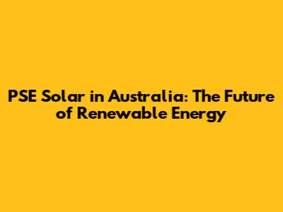 PSE Solar In Australia: The Future Of Renewable Energy