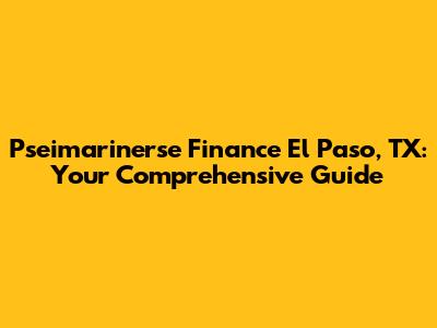Pseimarinerse Finance: Your El Paso, TX Guide
