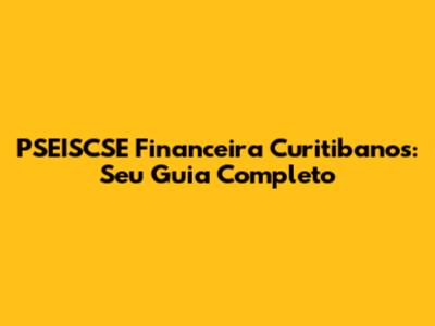 PSEISCSE Financeira Em Curitibanos: Seu Guia Completo