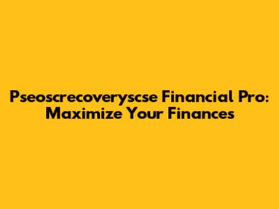 Pseoscrecoveryscse Financial Pro: Maximize Your Finances