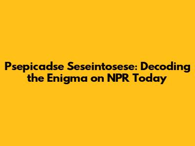 Psepicadse Seseintosese: NPR Today Explained
