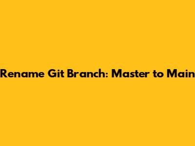 Rename Git Branch: Master To Main