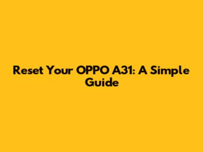 Reset Your OPPO A31: A Simple Guide