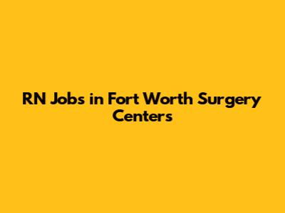 RN Jobs In Fort Worth Surgery Centers