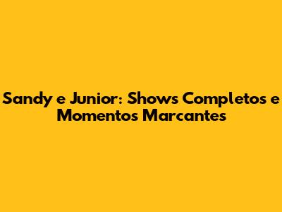 Sandy E Junior: Shows Completos E Momentos Marcantes