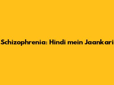 Schizophrenia: Hindi Mein Jaankari