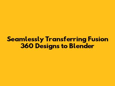 Seamlessly Transferring Fusion 360 Designs To Blender