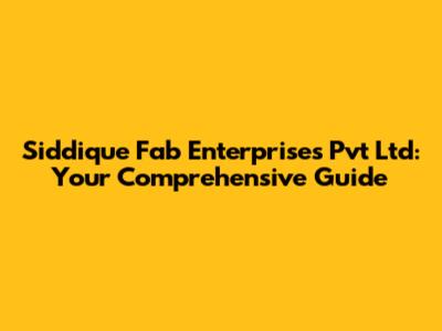 What is Siddique Fab Enterprises Pvt Ltd?