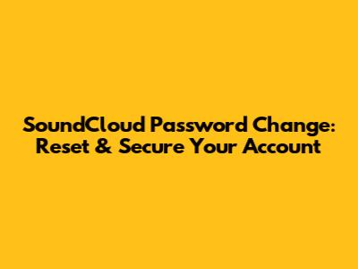 SoundCloud Password Change: Reset & Secure Your Account