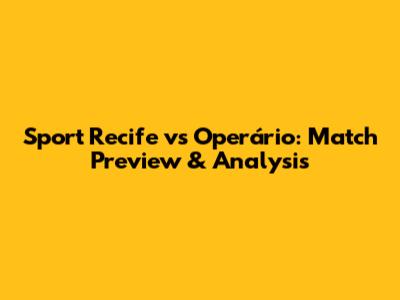 Sport Recife Vs Operário: Match Preview & Analysis