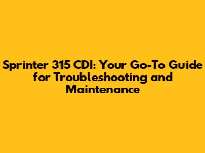 Sprinter 315 CDI: Troubleshooting & Maintenance Guide