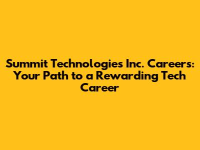 Summit Technologies Inc. Careers: Explore Job Openings