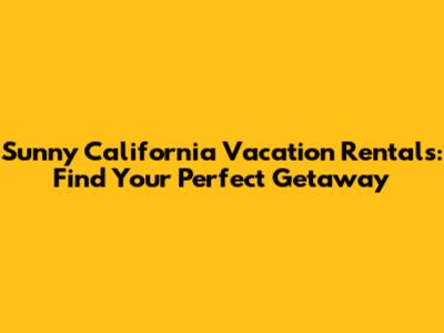 Sunny California Vacation Rentals: Find Your Perfect Getaway