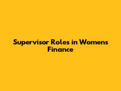Supervisor Roles In Women's Finance