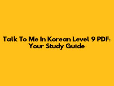 Talk To Me In Korean Level 9 PDF: Your Study Guide