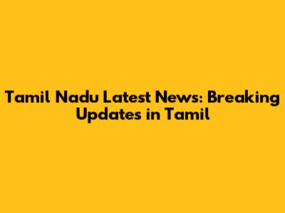Tamil Nadu Latest News: Breaking Updates In Tamil