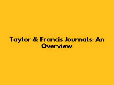 Taylor & Francis Journals: An Overview