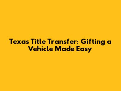 Hey there, car lovers and gift-givers! So, you're looking to transfer a vehicle title in Texas as a gift, huh? Awesome! Giving a car can be a super generous and thoughtful gesture. But, before you hand over those keys and a big ol' bow, there are some important steps to follow to make sure everything goes smoothly and legally. Don't worry, it's not as complicated as rebuilding a classic car from the ground up (unless that's what you're gifting, in which case, props to you!). This guide will break down everything you need to know about the Texas title transfer process for gifts, making it a breeze. We'll cover what you need, how to do it, and even touch on some common questions to keep you informed. Get ready to become a title transfer pro! Understanding the Texas title transfer process for gifts is crucial for ensuring a smooth and legally sound transaction. Whether you're gifting a car to a family member, a friend, or someone special, following the correct procedures can save you from potential headaches and legal complications down the line. We'll explore the necessary steps, required documents, and potential considerations when transferring a vehicle title as a gift in the Lone Star State.