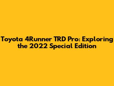 Let's dive into the Toyota 4Runner TRD Pro, particularly the 2022 Special Edition (SE). Guys, if you're a fan of off-roading or just love rugged SUVs, you've probably heard of the 4Runner TRD Pro. It's like the superhero version of the already capable 4Runner. So, what makes the 2022 SE so special? We're breaking it all down, from its unique features to its performance and why it's such a hit with adventure enthusiasts.