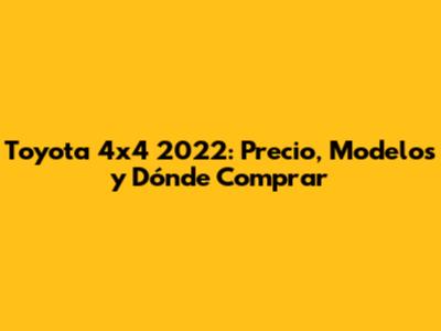 Toyota 4x4 2022: Precio, Modelos Y Dónde Comprar