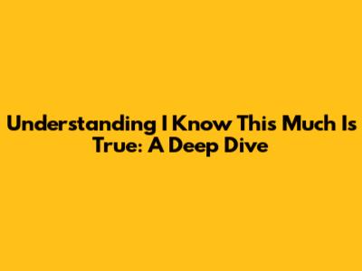 Unpacking the Title: "I Know This Much Is True"