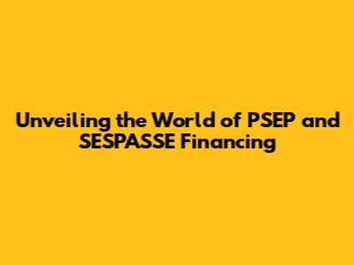 Hey everyone! Ever heard of PSEP and SESPASSE? Maybe you've stumbled upon these terms while diving into the world of finance, and you're thinking, "What in the world are those?" Well, fear not, because today, we're going to break down these concepts in a super easy way. We'll explore what they are, how they work, and why they matter. Basically, we're going to give you the lowdown on everything you need to know about PSEP and SESPASSE financing. Think of this as your friendly guide to navigating this sometimes-confusing territory. Ready to dive in? Let's go!