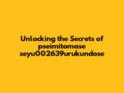 Unlocking The Secrets Of Pseimitomase Seyu002639urukundose