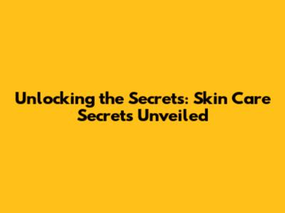 Unlocking The Secrets: Skin Care Secrets Unveiled