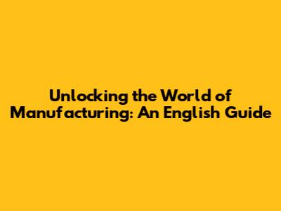 Unlocking The World Of Manufacturing: An English Guide