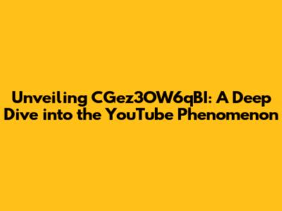 Unveiling CGez3OW6qBI: A Deep Dive Into The YouTube Phenomenon
