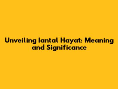 Unveiling 'Iantal Hayat': Meaning And Significance