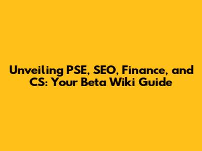 Unveiling PSE, SEO, Finance, And CS: Your Beta Wiki Guide