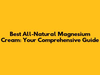Hey everyone! Today, we're diving deep into the world of magnesium creams, specifically the best all-natural options out there. Magnesium is super important for our bodies, playing a role in everything from muscle function to sleep quality. But how do you get enough of it? Well, one popular way is through magnesium cream! In this article, we'll explore why these creams are awesome, what to look for when choosing one, and review some of the top contenders in the all-natural category. So, if you're curious about boosting your magnesium levels and want a natural approach, stick around. Let's get started, shall we?