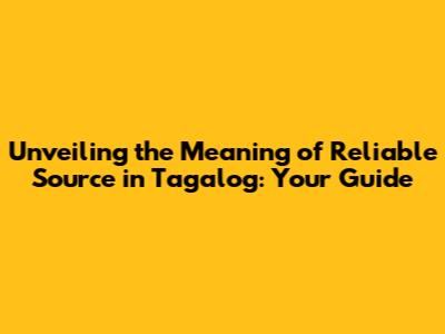 Unveiling The Meaning Of 'Reliable Source' In Tagalog: Your Guide