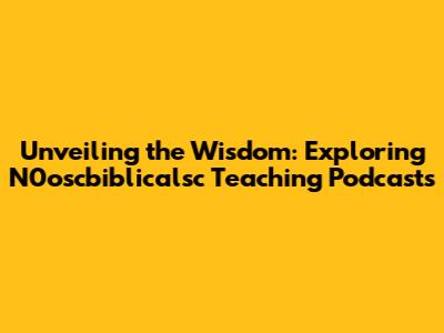 Unveiling The Wisdom: Exploring N0oscbiblicalsc Teaching Podcasts