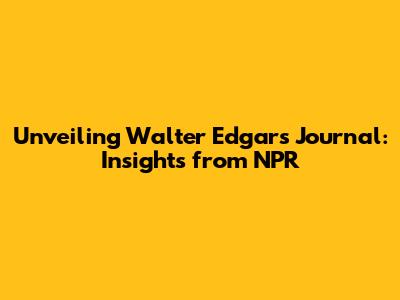 Unveiling Walter Edgar's Journal: Insights From NPR