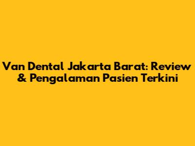 Van Dental Jakarta Barat: Review & Pengalaman Pasien Terkini