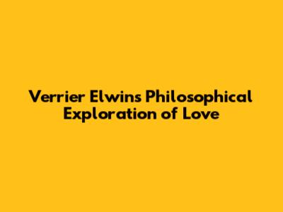 Verrier Elwin's Philosophical Exploration Of Love