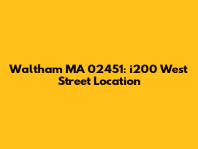 Hey guys! Today we're diving deep into a specific location that many of you have been asking about: i200 West Street in Waltham, MA 02451. This isn't just any address; it's a spot that piques curiosity, and we're here to shed some light on what makes it noteworthy. Whether you're a local looking for more info, planning a visit, or just curious about the area, stick around because we've got the details you need.