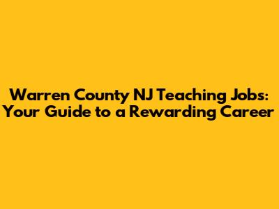 Warren County NJ Teaching Jobs: Your Guide To A Rewarding Career