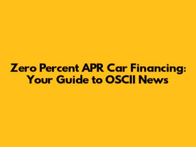 Zero Percent APR Car Financing: Your Guide To OSCII News